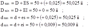 Рассчитываем значения предельных размеров деталей соединения Ø50H7/m6: