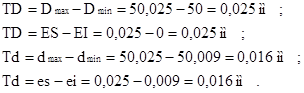 Находим допуски размеров отверстия Ø50H7 и вала Ø50m6: