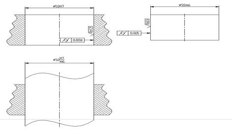 Для нормальной работы соединения требуется соблюдение формы сопрягаемых деталей. Так как поверхности цилиндрические, то находим величину отклонения от цилиндричности. Принимаем для данного соединения относительную геометрическую точность формы нормальную. По [3, таблица А.5] для 7-го квалитета степень точности формы будет 6, для 6-го квалитета степень точности формы установлена 5. Тогда [3, таблица А.6] допуск цилиндричности для отверстия будет 8 мкм, а для вала – 5 мкм.