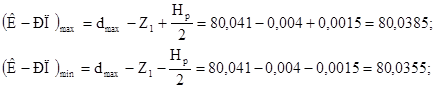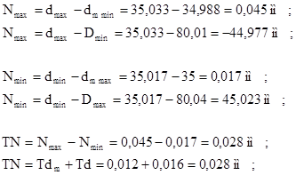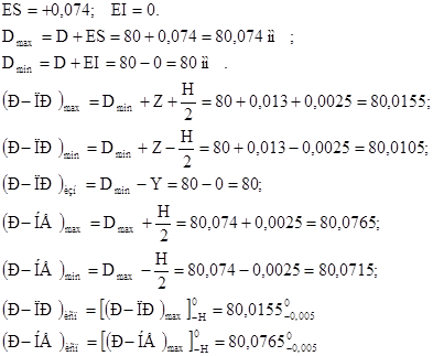 Определяем характеристики рабочего проходного и рабочего непроходного для отверстия.