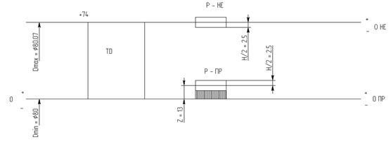 Калибр скоба Ø80m7 (Z1=4, H1=5, Y1=3, Hp=3):