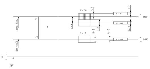 Строим схему расположения полей допусков калибра скобы (рис. 2.2).