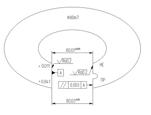 Окончательно принимаем допуск параллельности равным 0,02 мм, допуск симметричности равным 0,08 мм.