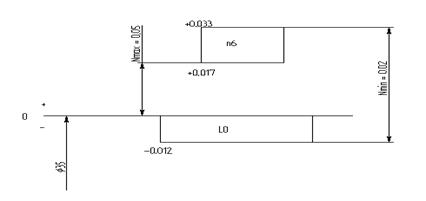 – внутреннее кольцо подшипника – вал (L0/ n6) – посадка в системе отверстия с натягом: