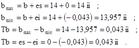 3 Определяем предельные размеры и допуск размера ширины шпонки 14h9 (0; -0,043):