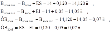 Определяем предельные размеры и допуск размера ширины паза вала 14H9 (+0,043; 0):