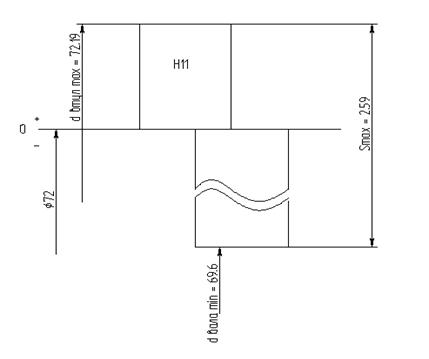 Пользуясь данными [3, таблица А.20], назначаем посадки вала и втулки, причем так как размер d не является центрирующим, поэтому для диаметра вала d допуск не назначают: при нецентрирующем d – для вала меньший диаметр d не менее диаметра d1 (в данном случае d1 = 69,6), для втулки Н11.