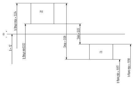 Допуски симметричности боковых сторон шлицев в диаметральном выражении по отношению к оси симметрии центрирующего элемента выбираем по [3, таблица А.21]. При ширине шлица b = 12 мм допуск симметричности равен 0,018 мм.