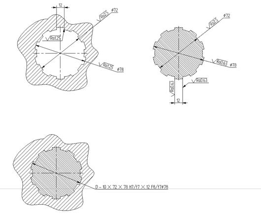Шероховатости элементов соединения выбираем по [3, таблица А.22]. При неподвижном соединении шероховатости поверхностей шлицевого соединения выбираем следующие: