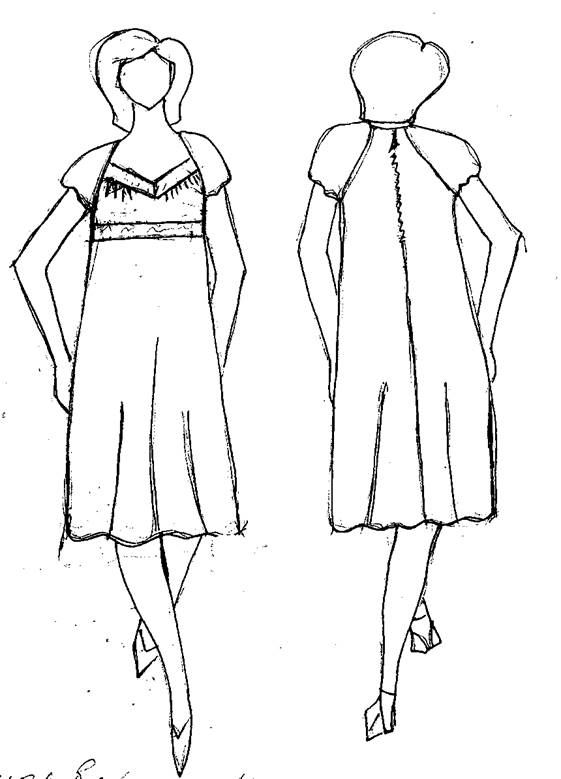 Исходя из всех выше указанных данных к курсовой работе на тему «Выбор материалов для изготовления нарядного платья для женщины старшей возрастной группы» был предложен следующий эскиз платья (рисунок 1).