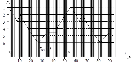 Кроме аналитического метода выбора минимальной длительности цикла обслуживания промышленным роботом технологического оборудования приведём графический метод, позволяющий наглядно проиллюстрировать технологический процесс и показать наиболее эффективный вариант обслуживания с наименьшей длительностью цикла (рис.2).