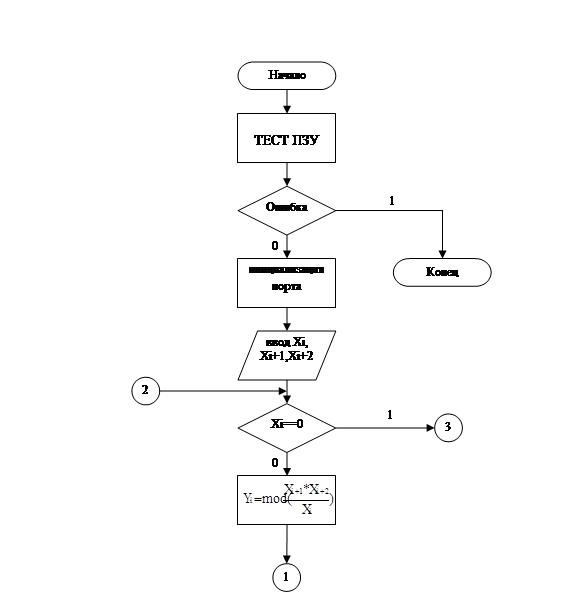 Тестирование ПЗУ заключается в суммировании содержимого всех мнемокодов программы, иными словами значений, находящихся по адреса ПЗУ. Каждый адрес содержит 16 - разрядный код, который соответствует определенной команде процессора. Вначале устанавливается начальный адрес кода программы. Перебор всех адресов делается в цикле, в котором проверяется достигнут ли адрес последний ячейки памяти, если это не так, то цикл вновь возобновляется. В противном случае, если достигнута последняя ячейка памяти, полученный результат суммы сравнивается со значением находящимся в определенном адресе ПЗУ за пределами основной программы. Это число должно быть получено ранее, путем ручного подсчета или же самой программой, которая тестирует ПЗУ. Это производится несколько раз для правильности результата, так как от него в дальнейшем будет зависеть: программа продолжит свое выполнение или же перейдет на участок, в которой будет находиться команда останова. Если тестирование ПЗУ закончилось не успешно, то до останова микропроцессора, он посылает сигнал в порт вывода - параллельный порт, в котором устанавливает значение, свидетельствующее об ошибки.
