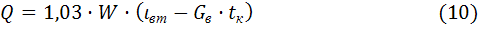 - энтальпия паров в барометрическом конденсаторе, Дж/кг;