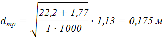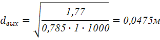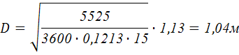 По нормалям НИИХИММАША (500, 600, 800, 1000, 1200, 1600) принимаем D = 1000 мм.