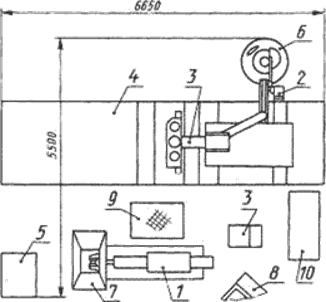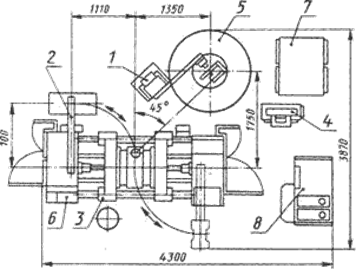 Комплекс АККД2118А.03 (рис. 6) предназначен для автоматизации технологического процесса холодной штамповки мелких деталей из листовых штучных заготовок массой до 0,1 кг и толщиной 0,5…2,5 мм.