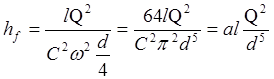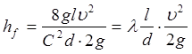 Помноживши у формулі (4) чисельник і знаменник на 2g одержимо остаточну формулу, яка може бути названа першою водопровідною формулою (формула Вейсбаха – Дарсі):