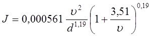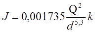 де k – поправочний коефіцієнт, залежний від середньої швидкості υ, причому Q виражається в м3 /с , а d в м .