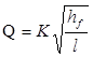 Оскільки ухил J – число безрозмірне, то витратна характеристика К повинна мати розмірність витрати рідини. З рівняння (12) виходить, що витратна характеристика є витратою рідини в трубі заданого діаметру при гідравлічному ухилі, рівному одиниці.