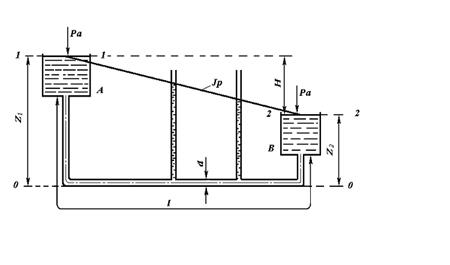 Отже, різниця рівнів Н в двох даних резервуарах повністю витрачається на подолання опорів в трубопроводі.