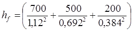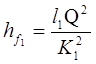 Загальні втрати опору по довжині трубопроводу рівні сумі втрат опору на окремих його ділянках: hf = hf1 + hf2 + hf3 або