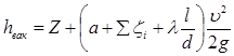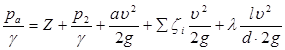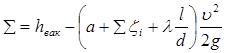 Σζі – сума коефіцієнтів місцевих опорів трубопроводу між перерізми 1–1 і 2–2. Оскільки