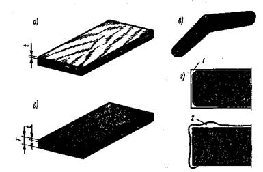 Удалять ворс после крашения или грунтовки и снимать местные наплывы лака (рис. 1, г) необходимо при прозрачной отделке деталей мебели.