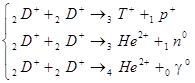 Термоядерный синтез. Для осуществления реакции синтеза достаточно сблизить нуклоны на расстояние, достаточное для “включения” ядерных сил притяжения. Этому препятствуют электрические силы отталкивания, приводящие к возникновению потенциального барьера реакции (рис. 13_2), для преодоления которого нуклонам необходимо сообщить весьма значительную кинетическую энергию. В земных условиях температуру, обеспечивающую “поджигание” термоядерной реакции, удается получить за счет цепной реакции деления урана . “Водородная бомба” представляет собой объем с ядерным горючим (обычно дейтерий), помещенный внутрь урановой бомбы, играющей роль запала, поджигающего реакции ядерного синтеза: