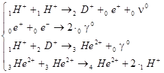 При более высоких температурах начинается “горение” ядер более тяжелых элементов(реакции гелиевого, углеродного, аргонового циклов), которое происходит с меньшим по сравнению с (5) энерговыделением, но играет решающую роль в процессах синтеза ядер тяжелых элементов нашей Вселенной.