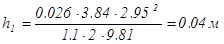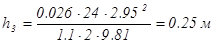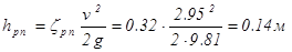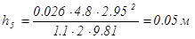 ж) cумма местных коэффициентов потери напора была найдена в п.1 по формуле ( 1.8 )