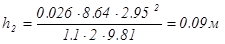 Разность уровней воды в подводящем и отводящем участках канала находим по формуле ( 2.1 ) , учитывая , что в этом случае площадью поперечного сечения будет две площади поперечного сечения трубы :