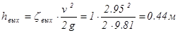 в) коэффициент сопротивления выхода принимаем равным 1 :