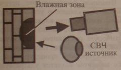 Нагрев СВЧ-излучением рекомендуется при обнаружении зон повышенной влажности в пористых неметаллах (рис. 2, г) в сочетании с тепловизионной регистрацией температуры.