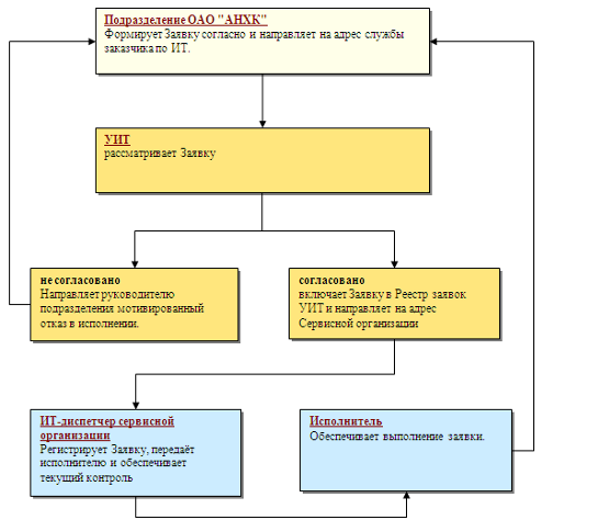| Текущий контроль исполнения заявки | УИТ | не установлен | В рамках текущего контроля отслеживаются: надлежащее исполнение заявки; приём и анализ претензий подразделения, представившего заявку; при необходимости представление сервисной организации претензий. При выявлении нарушений в исполнении заявки УИТ информирует подразделение, представившее заявку о принятых мерах. |