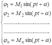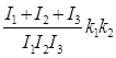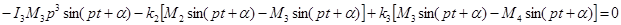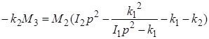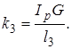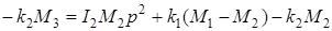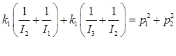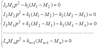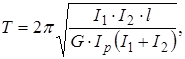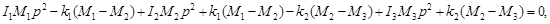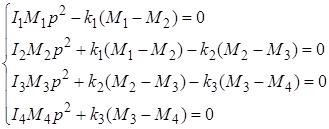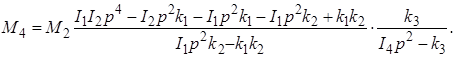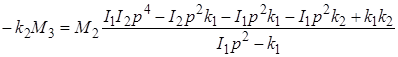 Здесь, снова, k1 , k2. k3 – коэффициенты жесткостей участков вала между дисками, р. – собственная частота крутильных колебаний вала, I1 , I2, I3, I4. – моменты инерции масс четырех дисков.