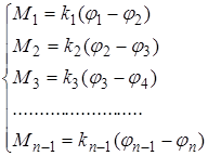 Таким образом, формулы (3.2) и (3.3) однозначно определяют коэффициенты жесткости участков вала на кручении для вала с тремя дисками.