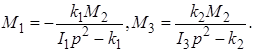 Обратная задача. Пусть известны собственные частоты р колебаний вала, коэффициенты жесткости k1 , k2 участков вала между дисками. Необходимо определить неизвестные моменты инерции масс двух дисков при известном моменте инерции третьего диска.
