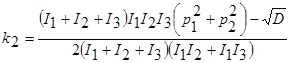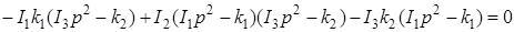 > t2:=p^4-(k1*(i1+i2)/(i1*i2)+k2*(i2+i3)/(i2*i3))*p^2+k1*k2*(i1+i2+i3)/(i1*i2*i3)=0;