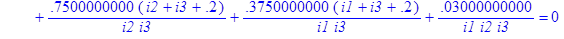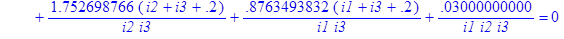 > t1:=.5172825777-.7192235937e-1*(i1+i2)/i1/i2-.1438447187*(i2+i3)/i2/i3+.2e-1*(i1+i2+i3)/i1/i2/i3 = 0;
