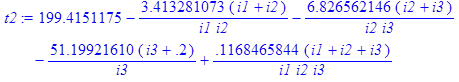 > t2:=7.732717430-.2780776408*(i1+i2)/i1/i2-.5561552816*(i2+i3)/i2/i3+.2e-1*(i1+i2+i3)/i1/i2/i3 = 0;