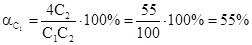 После затвердевания все сплавы состоят из γ -твердого раствора (твердый раствор В в А γ ). С понижением температуры ниже ТпА -С2 : А γ превращается в А α (модификации). В области С1 -С2 в равновесии находится две фазы α+γ, где α – твердый раствор В в А α .