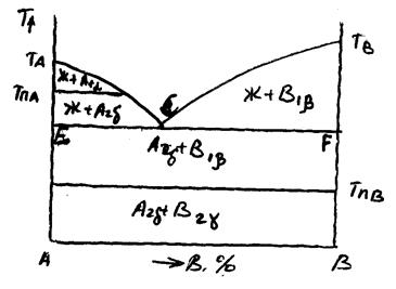 Рисунок 7. Диаграмма состояния с полиморфным превращением двух компонентов и с эвтектоидным превращением: ТпА