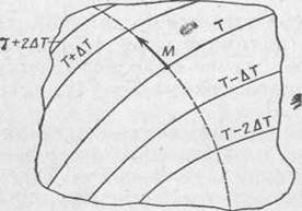 Задание температурного поля соотношением Т=Т(х, у, z, t) не всегда дает достаточно ясное представление о поведении этого поля, а задание изотермических поверхностей (поверхностей уровня) с отметкой на них соответствующих значений температуры Т=С равносильно заданию самого поля Т=Т(х, у, z, t), при этом взаимное расположение поверхностей уровня даст наглядное представление о соответствующем поле температур. Указанный способ изображения поля особенно удобен, когда речь идет о двумерном поле.