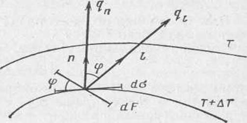 dQ1 =λ∂T/∂n·dσ·dt = λ·n·gradT dσ· dt =- qndσ·dt (2.14)