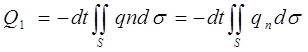 Количество теплоты, протекающее за время dt через площадь поверхности S, выразится интегралом