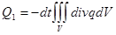 где Q — изменение внутренней энергии вещества, содержащегося в выделенном объеме V за время dt, Дж; Q1 — количество теплоты, введенное в выделенный объем путем теплопроводности за время dt, Дж; Q2 — количество теплоты, которое выделилось в объеме V за время dt вследствие внутренних источников теплоты, Дж.