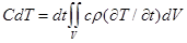Элементу объема dV массой ρdV для такого изменения температуры потребуется количество теплоты, равное cρ (dT/dt)dVdt, а всему объему