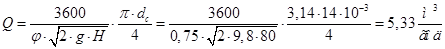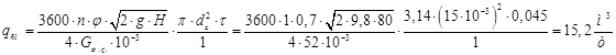 , швидкість руху рідини в живильному трубопроводі ![]()