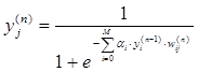 Виведене значення виходу нейрона yj (n) у кожному шарі n має вигляд: