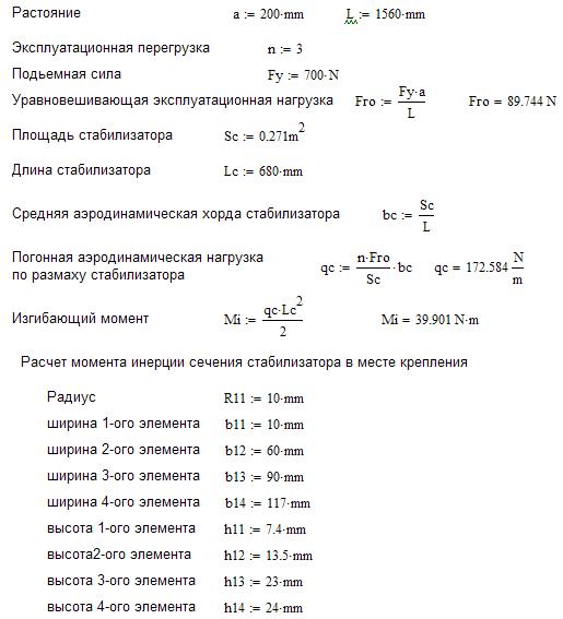 Расчёт горизонтального оперения