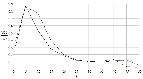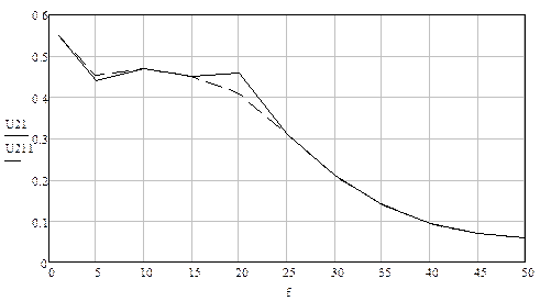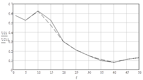 | U2 ’’, В | 0,55 | 0,45 | 0,47 | 0,45 | 0,41 | 0,31 | 0,21 | 0,14 | 0,095 | 0,07 | 0,06 |